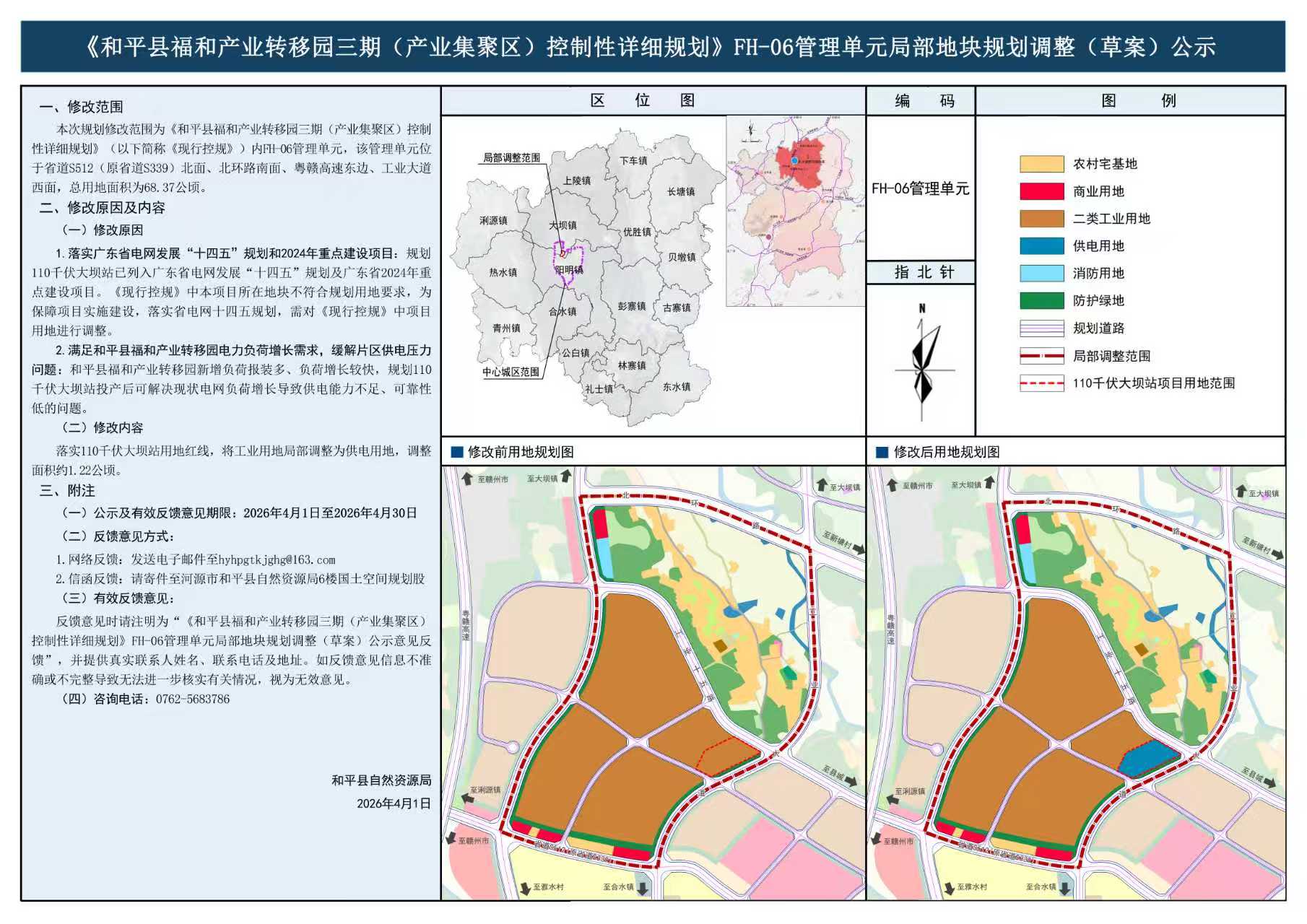 附件:和平县福和产业转移园三期(产业集聚区)控制性详细规划FH-06管理单元局部地块规划调整(草案)公示.jpg