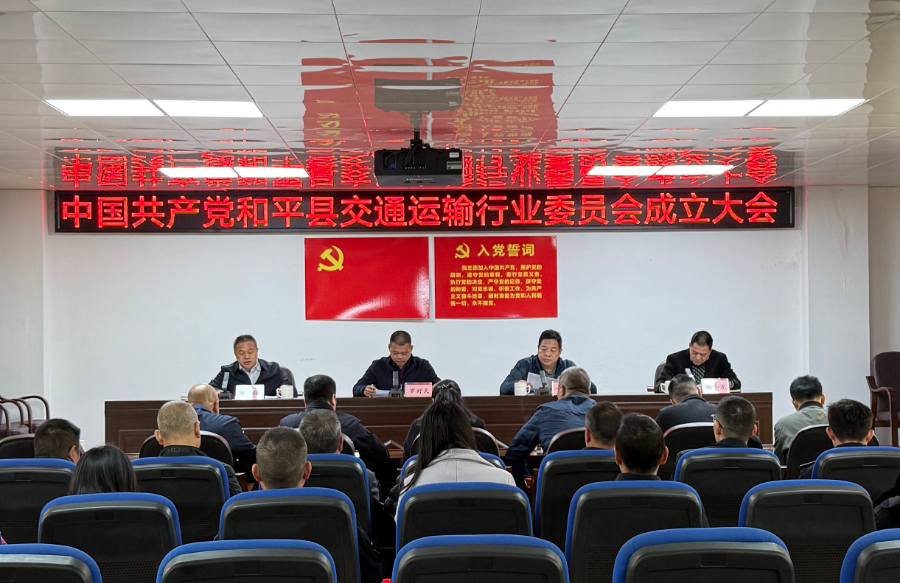 12月25日上午,中国共产党和平县交通运输行业委员会成立大会暨全县货车司机、网约车司机群体党建工作推进会在县交通运输局五楼会议室召开。县委社会工作部部长、县委“两新”工委书记罗好天,县交通运输局党组书记、局长、县交通运输行业党委书记叶文新出席会议,并共同为行业党委成立揭牌。县交通运输行业党委委员,县委社会工作部、县委“两新”工委相关领导,县交通运输局相关股室负责人,企业代表及司机党员代表参加会议。