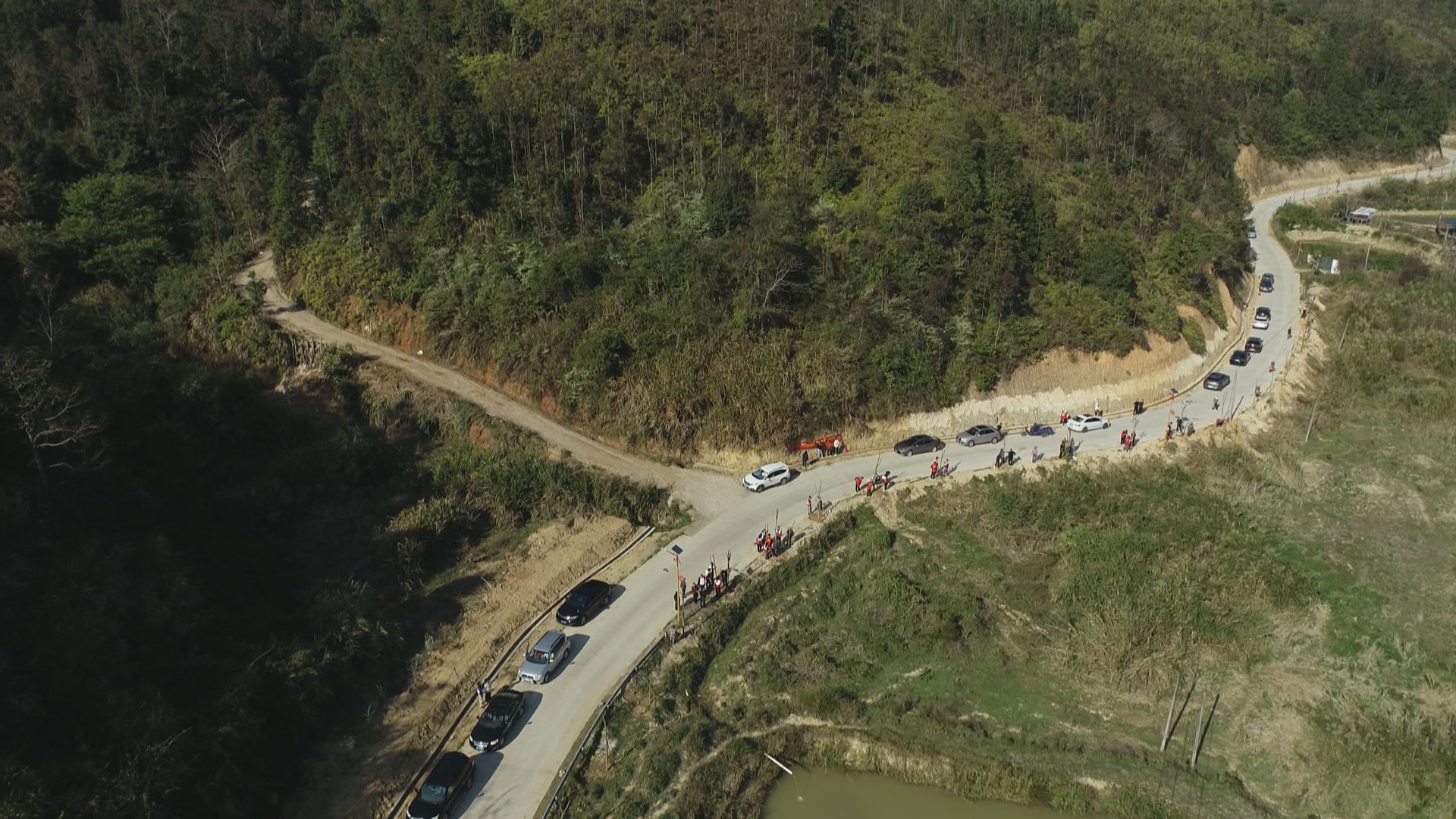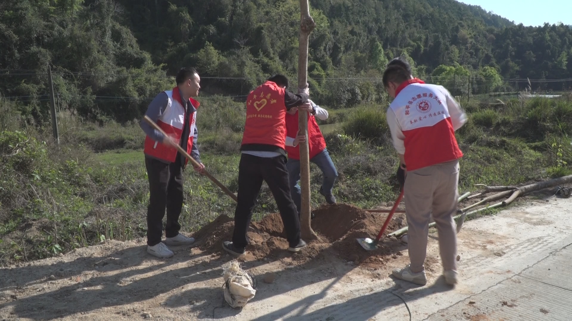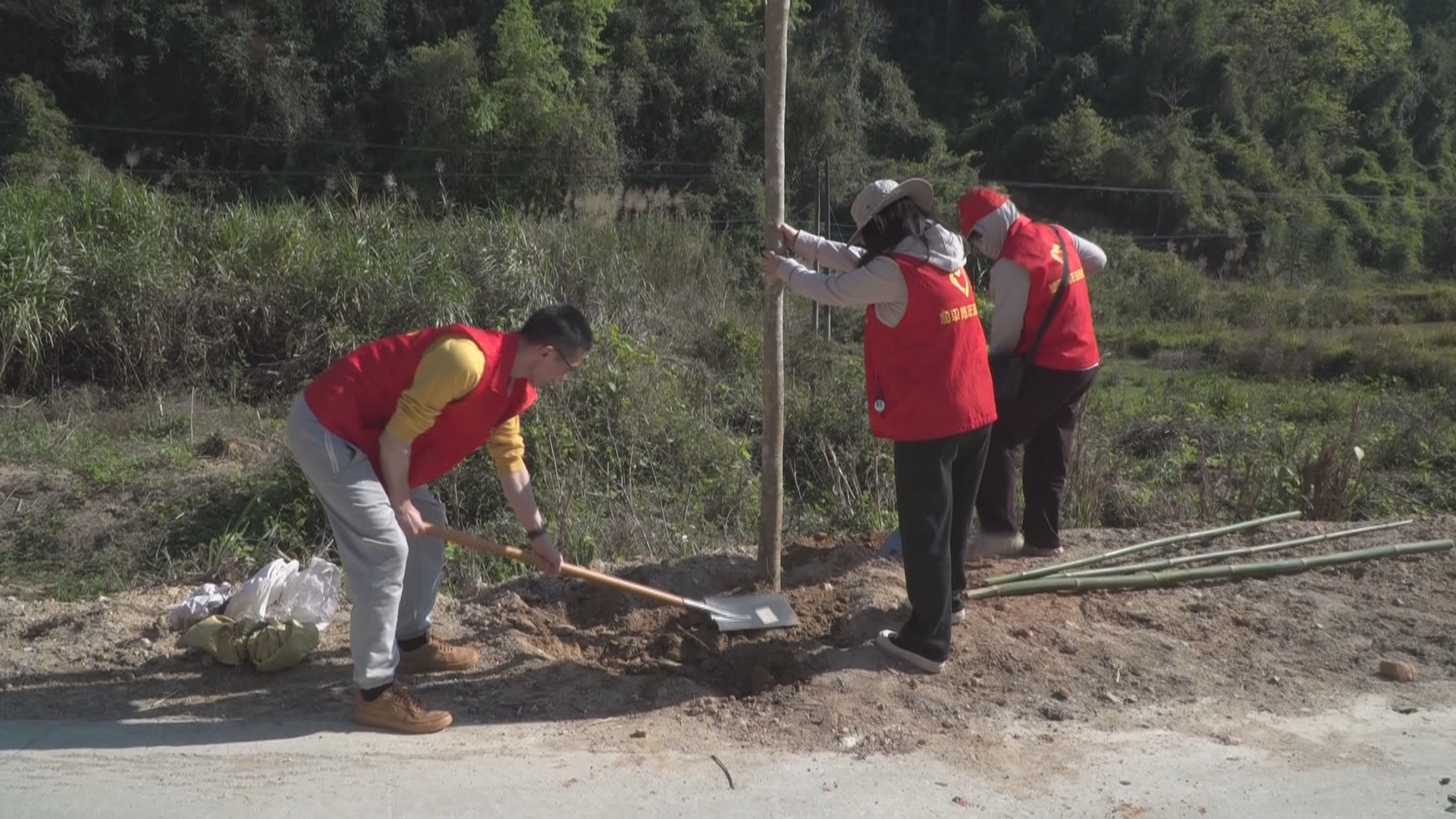 在植树现场,镇村干部、党员志愿者以及各县直挂钩单位代表分工明确、配合默契,挥锹铲土、扶苗填坑、浇水灌溉,每一个环节都认真细致。经过辛勤劳作,原本空旷的路旁,一排排新栽的秋枫、无患子、荫香、竹柏、银叶金合欢等乔木树苗整齐挺立,展现出勃勃生机。