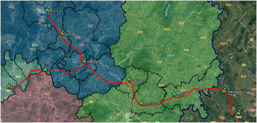 国家管网集团广东省天然气管网“县县通工程”兴宁-和平-连平项目起点为梅州-五华-兴宁项目的兴宁分输站(和平方向)站场围墙外2m,终点分别为和平末站和连平末站。沿线途经梅州市兴宁市、河源市龙川县(铁场镇、丰稔镇、四都镇)、和平县(东水镇、林寨镇、礼士镇、公白镇、彭寨镇、阳明镇)、连平县(绣缎镇、大湖镇、三角镇)。全线规划长度约160.8km,设计压力6.3MPa,管径DN300。其中兴宁分输站-和平末站段长度约122.3km,林寨阀室-连平末站段长度约38.5km。沿线设3座站场,分别为龙川分输站、和平末站、连平末站,共设置6座阀室。