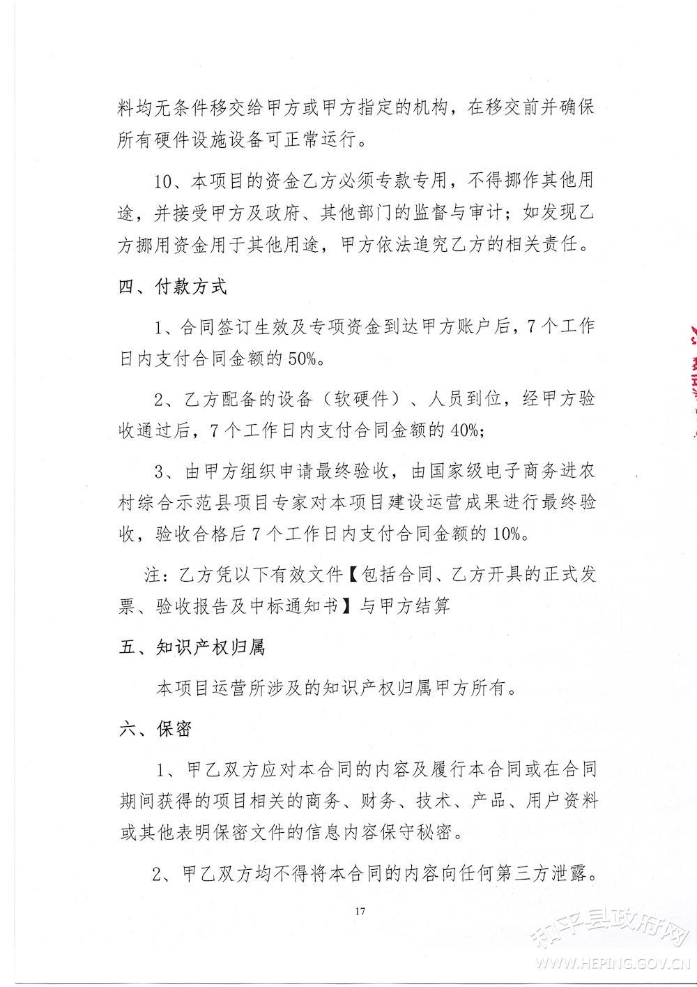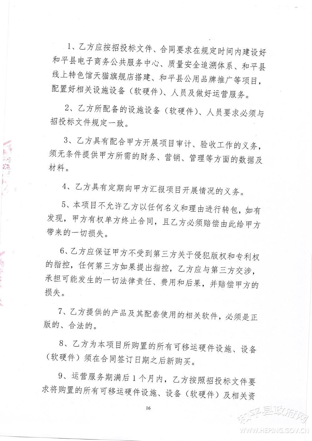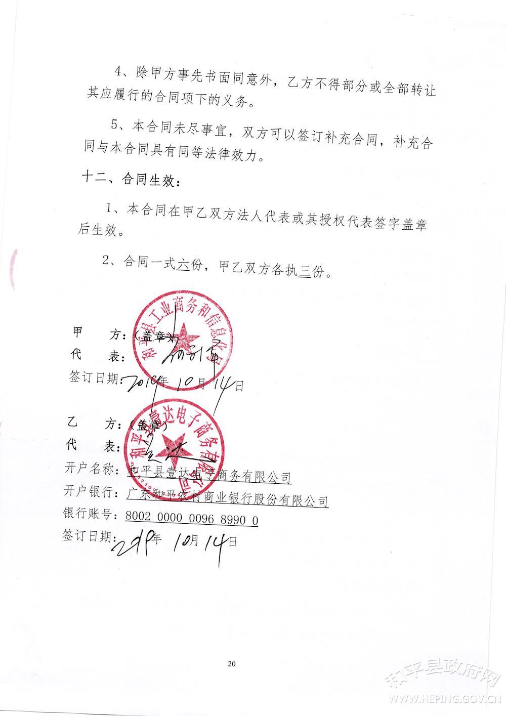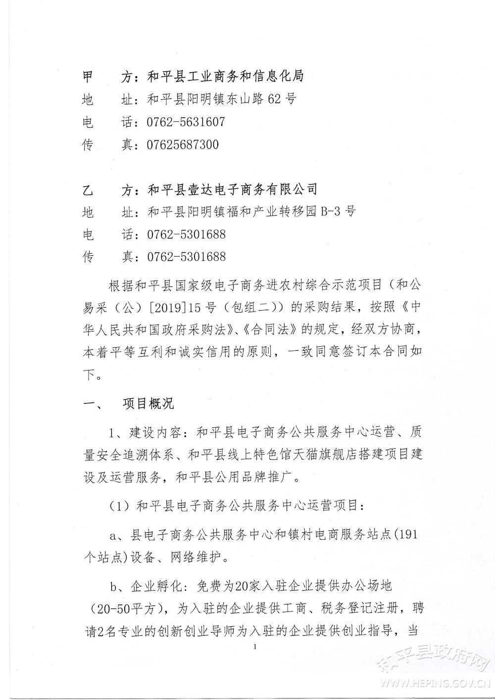 和平县国家级电子商务进农村综合示范项目(包组二)合同