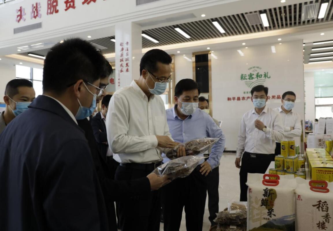 市长林涛全面参观了公共服务中心特色展厅,详细了解和平当地的特色农产品,并听取了和平县电商进农村工作情况、公共服务中心运营情况、农特产品上行情况以及服务功能情况等汇报。