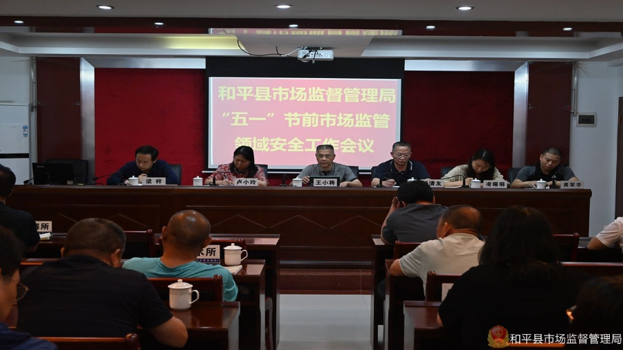 为切实保障“五一”期间市场秩序安全稳定,有效预防市场监管领域安全生产事故发生,确保人民群众的生命财产安全。4月30日,由县市场监管局党组书记、局长主持召开“五一”节前市场监管领域安全工作会议,局全体领导班子及相关股所负责人参加会议。