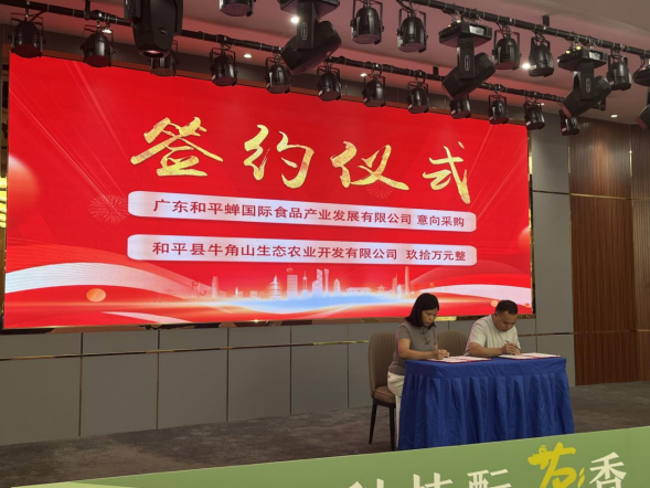 作为本次活动的核心环节,成果对接签约仪式亮点纷呈。在品牌赋能方面,深圳职业技术大学分别向和平县牛角山生态发展有限公司、和平县馨馨响家庭农场授权“万峰雷”“和平蝉”两大茶叶商标。其中,“万峰雷”源自明代心学大家王阳明诗句“百里妖气一战清,万峰雷鼓洗回兵”,喻示茶之清心涤尘;“和平蝉”则结合当地特色小绿叶蝉生态与和平县名,传递“人与自然和谐共生”理念,实现文化价值与产业价值的双重提升。产业合作方面,广东和平蝉国际食品产业发展有限公司与和平县牛角山生态农业开发有限公司签订茶叶采购意向协议,助力优质茶产品走向更广阔市场。金融支持环节,中国银行河源和平支行与和平县青州狮头寨茶场达成授信合作,专项信贷将重点用于茶场生产线升级与市场拓展,为产业发展注入“金融活水”。