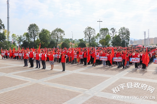 9月29日上午,为充分发挥党团员的引领示范作用,深入推进志愿服务工作,助力争创全国县级文明城市提名城市,和平县举行“创文明城市 建共享心城”2018年党团员志愿服务活动誓师大会。县领导钟斌、吴维红、洪炎雄和各镇各单位创文工作分管领导、各公益组织志愿者、县各系统党团员志愿者、县直各中小学志愿者共1000多名志愿者参加誓师大会。